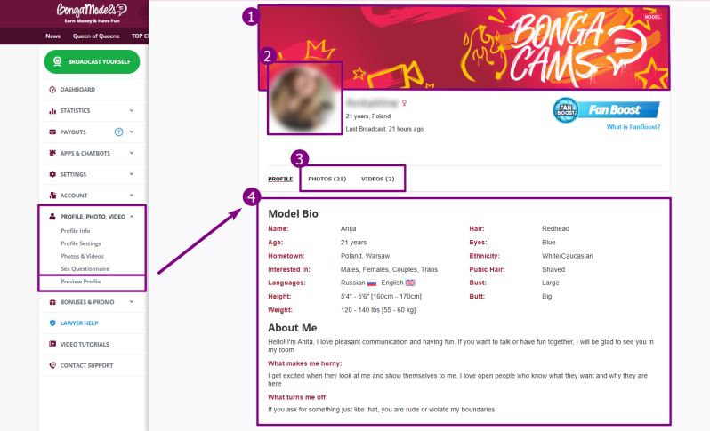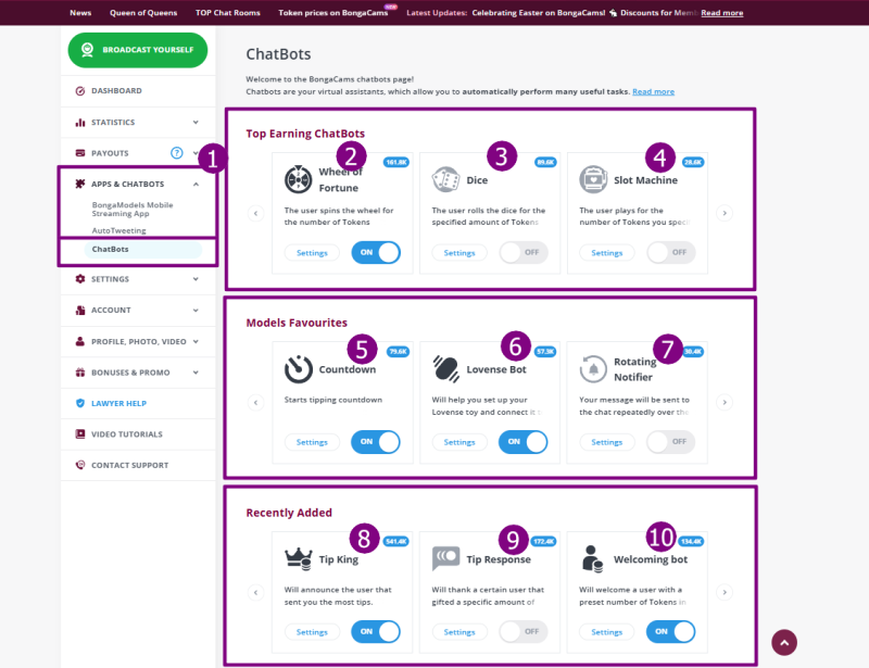Bongacams — один из лидирующих сайтов в вебкам индустрии, имеет огромную платежеспособную аудиторию и пользуется особой популярностью у веб моделей стран СНГ, которые хотят общаться на русском языке. Сайт имеет полностью русскоязычный интерфейс и встроенный переводчик сообщений как для мемберов, так и для веб моделей, что значительно упрощает взаимодействие и работу на сайте. Вы можете работать на Bongacams как с компьютера, так и с телефона, используя не только браузер, но и их удобное приложение, что значительно ускоряет выход в онлайн и делает работу доступной буквально в несколько кликов. В данной статье мы подробно разберем, как настроить профиль вебмодели на вебкам сайте Bongacams, какие есть виды чатов, мемберов, ознакомимся с ботами и мессенджером, а также покажем, как работать со смартфона. Мы также подготовили для вас видеоуроки и примеры работы на вебкам сайте, чтобы вы могли увидеть весь процесс работы и потенциал заработка на практике.