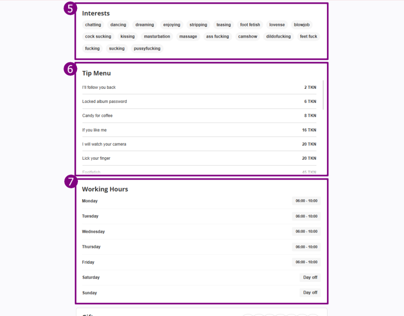 5. Ваши интересы - Теги которые указывают и описывают вас и то что, вы делаете в шоу.