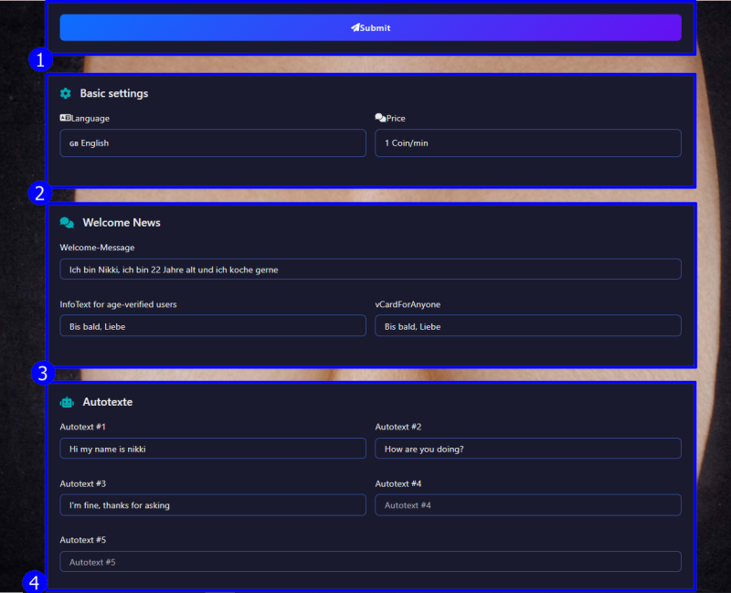 1. Submit - Начните трансляцию, нажав на эту кнопку.