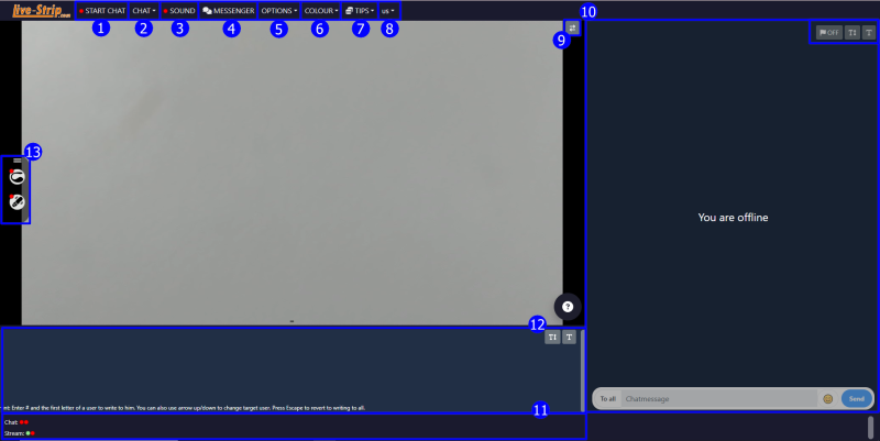 1. START CHAT - Нажмите, если вы готовы к трансляции.
