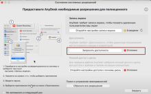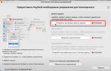 - Возвращаемся в окно Anydesk с запросом разрешений. Следующее разрешение Запросить доступность, как и в предыдущем шаге отмечаем Anydesk в списке и вводим пароль администратора.