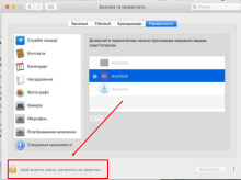 - В зависимости от настроек приватности или версии macOS может потребоваться нажать на значок замка в левом нижнем углу — иначе ползунки будут неактивны. В появившемся окне введите пароль администратора, после чего можно вносить изменения.