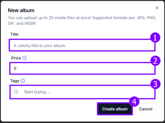 3. Tags - Хэштеги подходящие к вашему альбому.