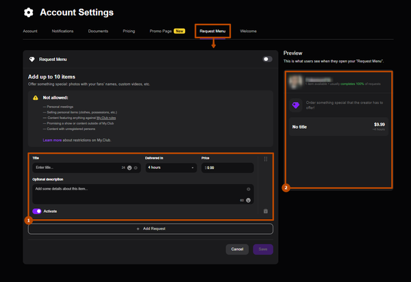 - 9. Create Request Menu Можно создать меню запросов, например что вы готовы сделать за определенную цену.
