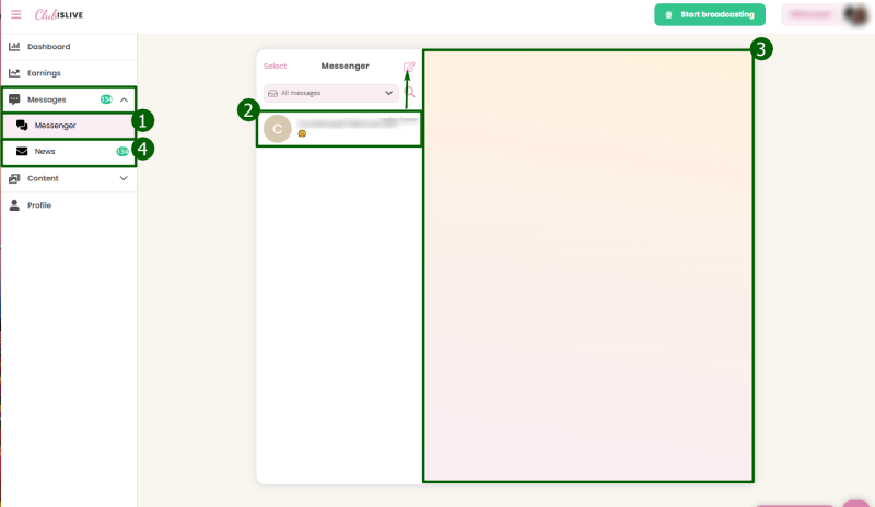 3. Messages - Ваши сообщения с пользователями и новости сайта.
