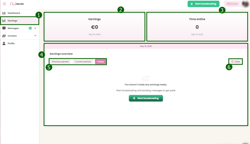 2. Earnings - Статистика вашего заработка.
