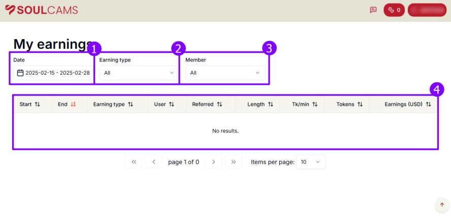 4. Статистика дохода - Таблица где отображается ваш заработок.