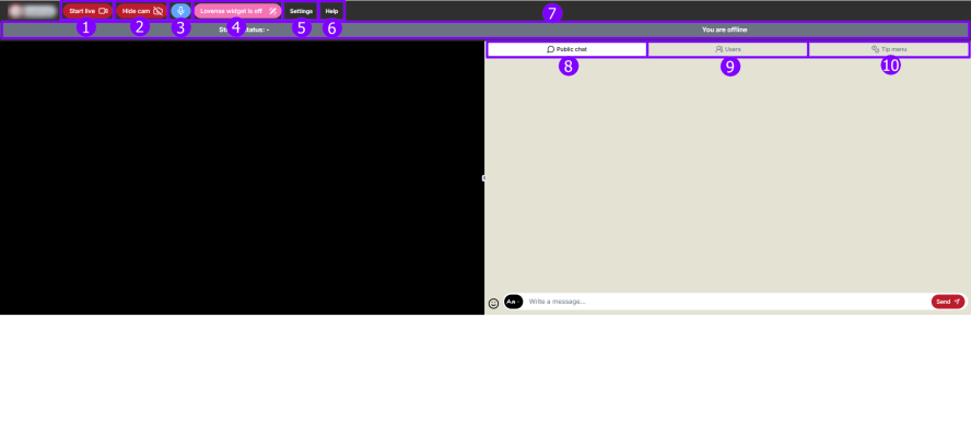 7. Stream status - Статус вашей трансляции, показывает находитесь ли вы в сети.